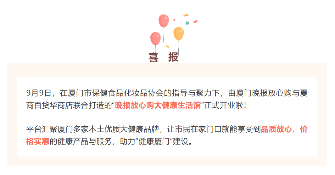 廈門晚報(bào)放心購(gòu)大健康生活館正式開業(yè)啦!思健蜂膠等系列大健康保健食品受邀入駐